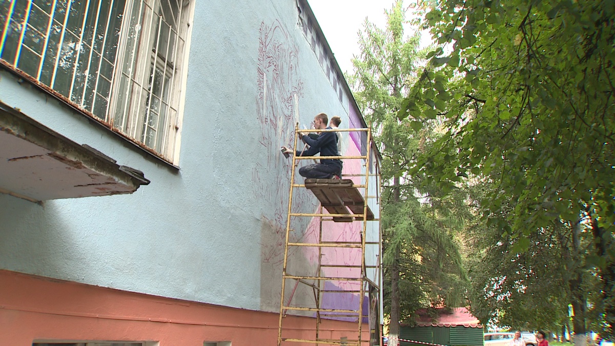 В течение нескольких дней художники из Ярославля, Москвы, Санкт-Петербурга, Екатеринбурга и других городов страны не просто продемонстрируют свои навыки, но и заметно преобразят облик столицы Золотого кольца. Сразу шесть площадок в разных районах города обретут новый вид. Каждая закреплена за тем или иным художником. Например, библиотека имени Некрасова на несколько дней стала холстом для ярославских ребят. Над эскизом долго думать не пришлось. Уличные художники решили изобразить портрет Николая Алексеевича вместе с персонажами его произведений. Ребята признаются, чтобы воплотить задуманное, потребуется минимум 10 часов ежедневной работы. Ведь закончить полотно нужно уже к субботе. 12 сентября Ярославль отметит свое 1010-летие.