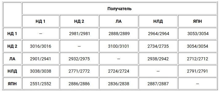 Таблица переданных/полученных пакетов (процентное соотношение)