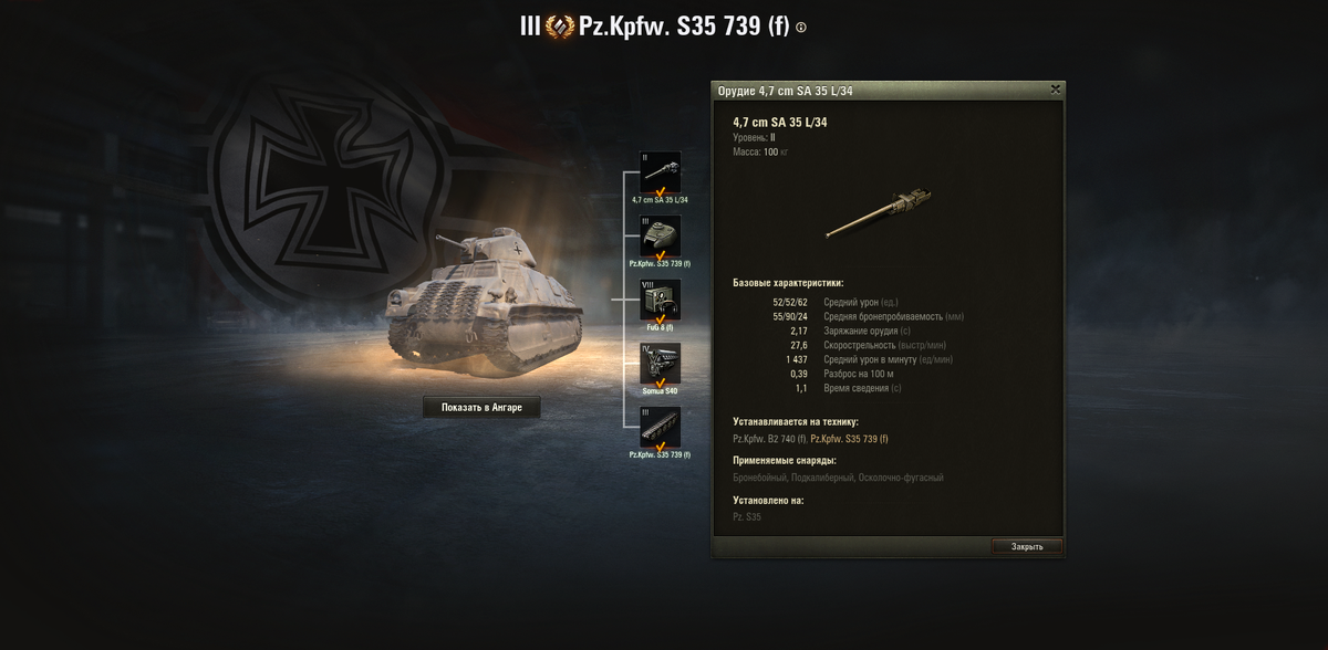 На борту у нас "пушка-колотушка" с разовым уроном в 52 единицы и пробоем на ББ-шках 55 мм.Орудие скорострельное, 2.17 секунды без апгрейдов, только вот в нынешних реалиях, учитывая тот факт, что мы попадаем к 4 уровням, нам придётся пользоваться голдой.