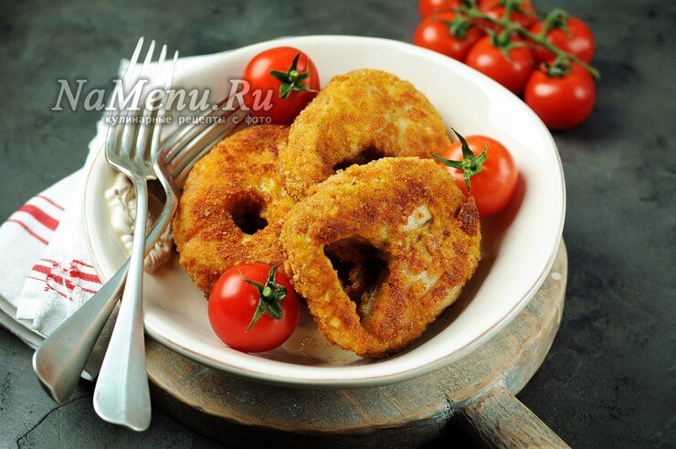 🥣Затем обмакните стейки во взбитом яйце и хорошенько обваляйте их в панировочных сухарях