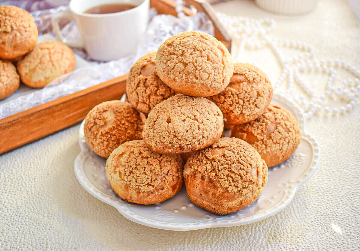 Пирожные-шарики, с хрустящей корочкой и нежным сливочным кремом внутри. Для наполнения можно использовать любой крем, но я люблю, именно, со взбитыми сливками. Ингредиенты: Для заварного теста: Для кракелинового теста: Для крема: Начнем приготовление с заварного теста. Для него я использую антипригарную кастрюлю. В ней тесто не будет пригорать. В кастрюле соедините молоко, воду и сливочное масло. Поставьте кастрюлю на огонь и доведите все вместе до кипения. Дайте массе немного покипеть, чтобы масло полностью растаяло и смешалось с молоком и водой. В кипящую массу резко высыпьте всю муку и быстро вмешайте её в жидкость. Тесто начнет собираться в комок. Постоянно мешая, подержите кастрюлю с тестом на огне еще в течение минуты, чтобы выпарить лишнюю влагу. Масса хорошо замешивается деревянной лопаткой. Теперь отставьте кастрюлю с тестом в сторону и дайте ему остыть до теплого состояния. Периодически тесто перемешивайте - так оно будет остывать быстрее. Пока тесто остывает приготовьте крак