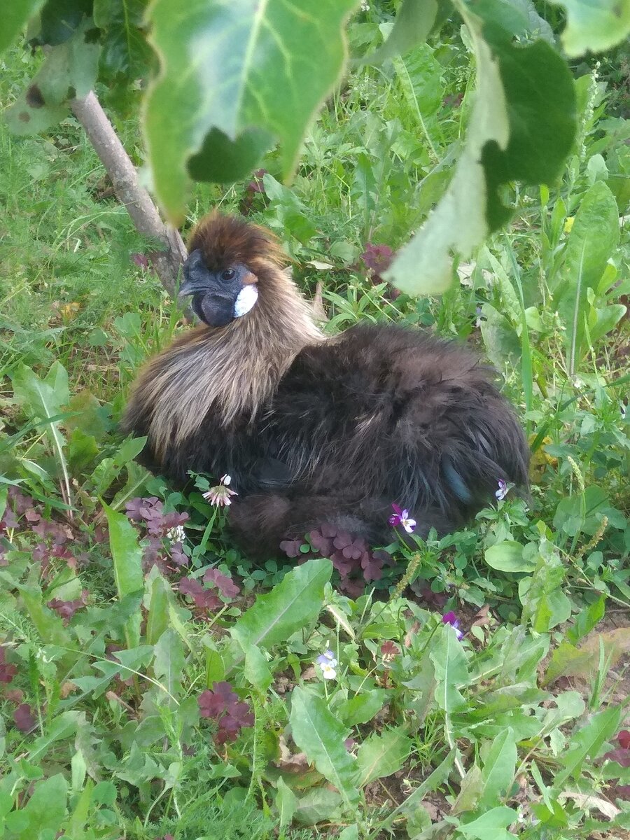 Забыла Вам рассказать про ещё одного своего красавца петуха Китайской Шёлковой породы. Дали ему имя Султана, милостевейшего предводителя, великого полководца и завоевателя Тамерлана. В связи с тем, что он так же как и его великий тёзка, все цело посвятил себя заботе о своём "народе". Только в случае с моими героем это подразумевает постоянный контроль за безопасностью подрастающего поколения. Так