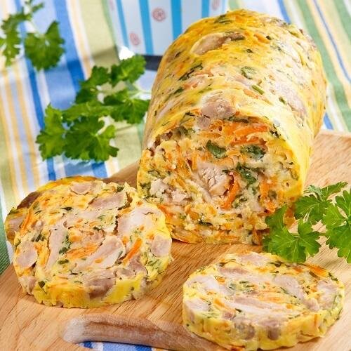 - Филе, морковь, петрушку, яйца, манку, кефир, соль, перец, приправы соединить и хорошо перемешать.