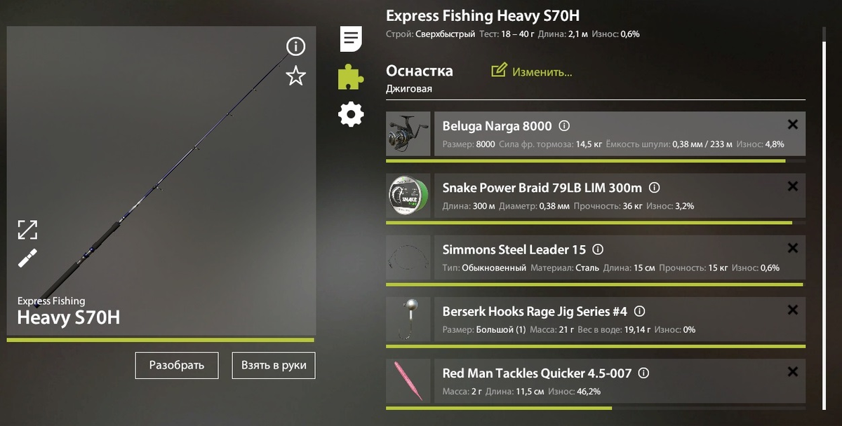 Заходим на точку 46:19, квадрат F8 В качестве приманки выбираем Quicker 4.5-007. Сборка следующая: Делаем заброс и выставляем на катушке скорость проводки на 30. По проводке - оборот, пауза. Заброс меж двух берёз. Пробуйте! НХНЧ!