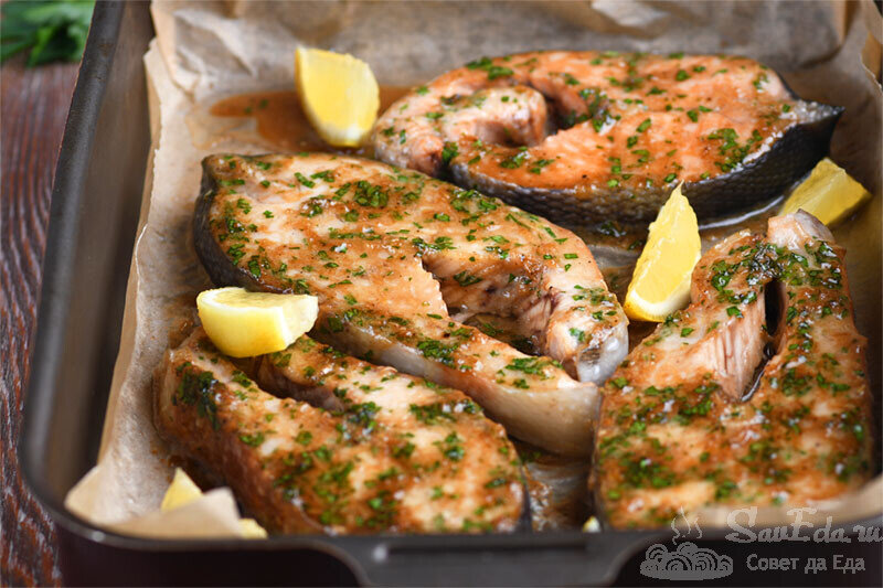 На приготовление такой рыбы уходит не больше 20 минут. Таким способом готовлю и красную, и белую рыбу. Просто выкладываю ее в форму, поливаю ароматным соусом и запекаю около 15 минут. Рыба получается нежная, сочная и невероятно вкусная. Подавать ее можно с рисом, жареными или запеченными овощами.