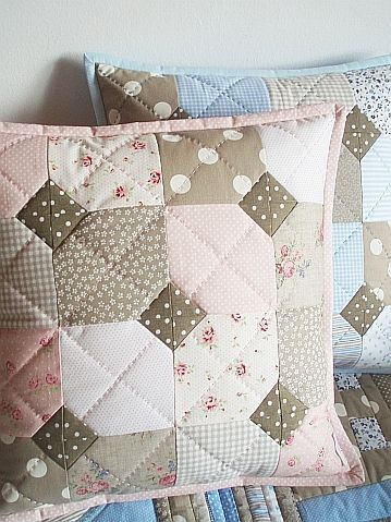 А если сложно для Вас собирать - "соты", "вертолеты", "геометрию", "колодцы" и т.д. - можно пойти простым путем, сшить прямоугольные полоски между собой и простегать на синтепоне, для объема и вот красивая подушка готова! А в комплект к нему - покрывало!