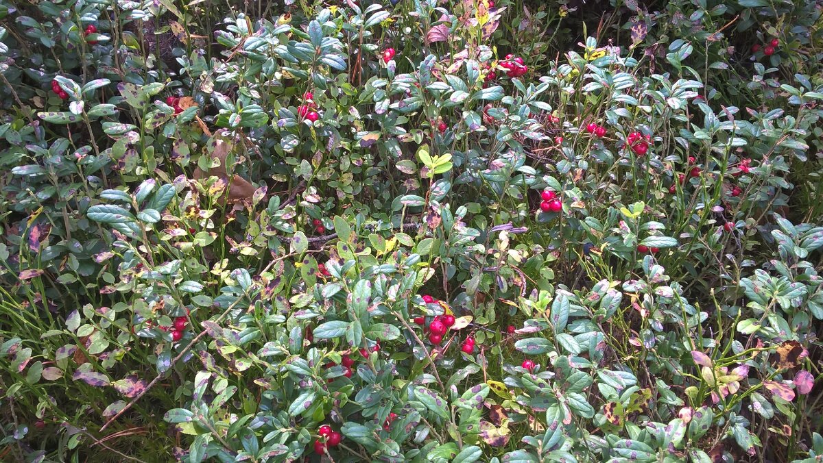 Ещё летом, собирая чернику, я несколько раз натыкалась на полянки с брусникой. Созревать в наших местах эта ягода начинает с конца августа, соответственно и собирать её можно с конца августа и до начала заморозков. Уже в начале августа на глаза стали попадаться объявления о продаже брусники. Люди торопились собрать ягоду, хотя она ещё была не спелой. Мне не раз говорили, что розовые и белые ягоды брусники не несут в себе всю пользу витаминов и микроэлементов, и только спелая ягода может дать здоровье и укрепить иммунитет. Брусника содержит витамины: А, В, С, Е, а ещё железо, калий, цинк, медь, магний, фосфор. Эту ягоду используют в лечении целого списка заболеваний: простуда, анемия, диабет, желтуха, ревматизм.... Всего и не перечислишь. Дождалась сентября, и чтобы было не так боязно, у нас ведь медведей развелось много, в компании с бабой Таней отправилась за ягодой. Сразу скажу, мы опоздали. Брусники почти не осталось. Набрать удалось литр, может полтора. Видимо много народу уже