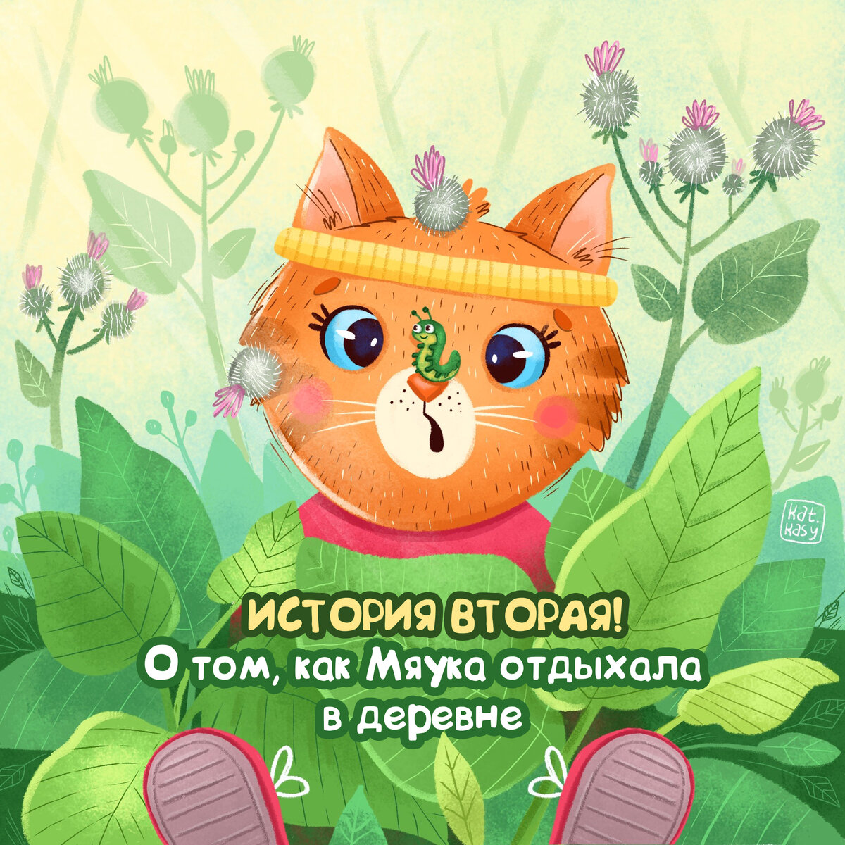 Мяука высунула голову в окно машины. Ветер развивал шерсть и раздувал щеки. Мяука закрывала глаза от ветра, но голову не убирала, а улыбалась. Наконец-то лето и она едет к бабушке в деревню. А там её ждёт много солнца, зелени, свободы и необыкновенных приключений.
