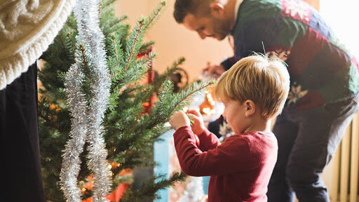 Одно из приятных подготовительных занятий-рассматривать небьющиеся и безопасные елочные украшения вместе с ребёнком.
