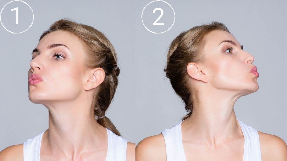 Это упражнение для укрепления мышц шеи и борьбы с жировыми отложениями под нижней челюстью.