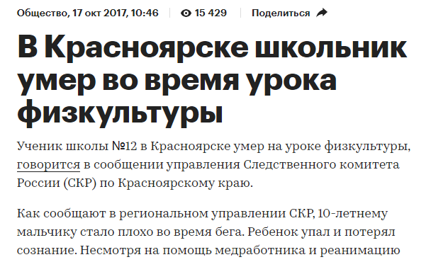 Вспомним прошлый год, то же самое было на Алтае, ученик 10 класса занимался на турнике, потом ему стало плохо и он умер.