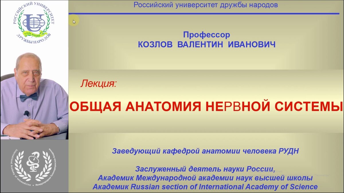Видеолекция для второго курса медиков: "ОБЩАЯ АНАТОМИЯ НЕРВНОЙ СИСТЕМЫ" . Читает заведующий кафедрой анатомии человека РУДН, профессор, заслуженный деятель науки РФ, академик Международной академии наук высшей школы. Увлекательная, авторская лекция, которая расскажет: что такое анатомия нервной системы и как ее изучать? В лекции Вам расскажут про строение нервной системы, познакомят с основными