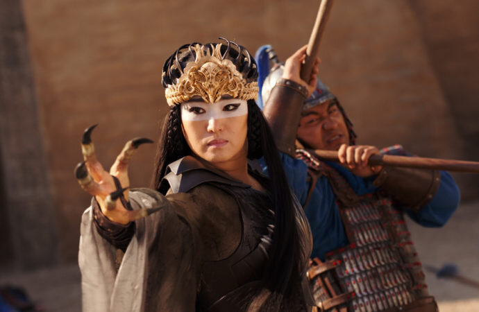 Не особо вдаваясь в подробности, уже в начале фильма нам сообщают, что девушка с рождения является носительницей жизненной силы Ци (это ключевое понятие китайской философии; подробности можно прочитать в энциклопедии, а в русле диснеевского сюжета Ци – что-то вроде Силы в «Звездных войнах»). По логике фильма, есть темная и светлая стороны Ци, и если Мулан – персонаж типа Люка Скайуокера, то на месте Дарта Вейдера оказывается как раз героиня Гун Ли, ведьма по имени Xianniang (не возьмемся транслитерировать). Ведьма – генерал армии кочевников, славящихся безжалостностью и вероломством и желающих уничтожить Китайскую империю, для чего орда черных всадников и движется к империи с севера. У Мулан и Xianniang сложные отношения, одновременно восходящие к франшизе Лукаса и к творчеству Имоу. А если отвлечься от аллюзий, то Мулан нужно овладеть своей Ци, понять, чью сторону выбрать, и собрать силы для решающего боя. Одним из участников этого боя станет еще одна культовая личность – Джет Ли, неожиданно воплотивший образ императора Поднебесной.