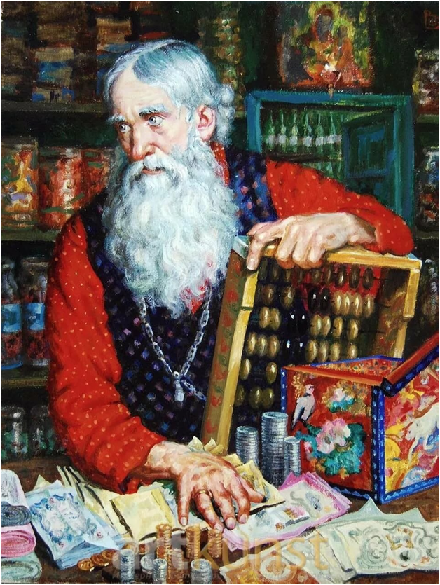 Купец Болотов задолжал Кухтерину - сыну двадцать тысяч. Срок векселям подошёл, а не платит. Кухтерин к нему поехал. — Надо платить.— Да денег нет, Евграфыч, деньги в товаре.— Коли так давай я тебя побрею. И долг прощу. Окно открыл, кричит:— Эй, цирюльник!- Чего изволите-с?— Сними эту бороду начисто. А у Болотова борода была чёрная, окладистая — одно загляденье. Весь город его за бороду знал.
