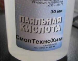 Чаще всего паяльной кислотой считают хлорид цинка. В действительности же жидкие флюсы готовятся на основе фосфорной или соляной кислот.