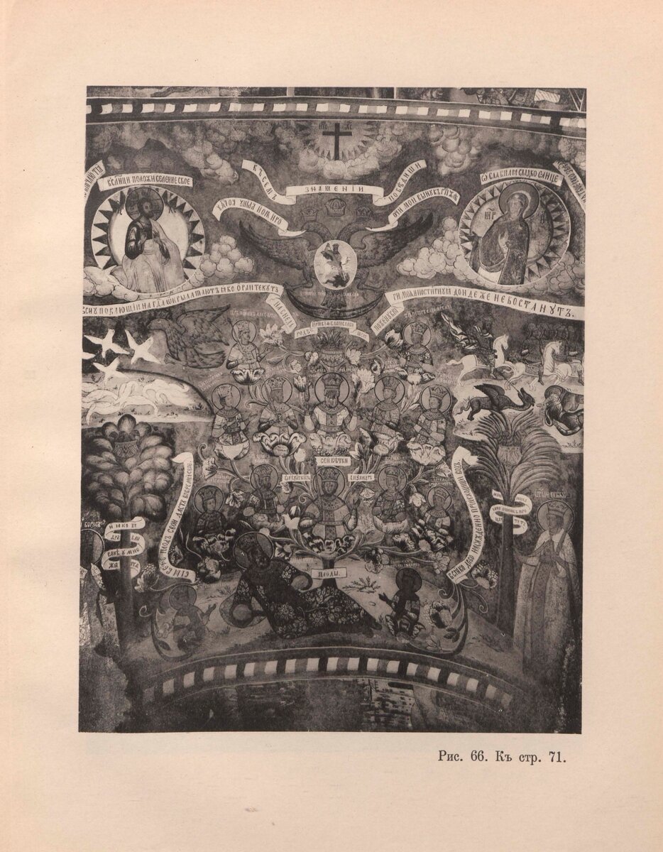Но это придется выкинуть из Истории такую личность как Ивана Грозного и царей помельче.Опять же какие то неизвестные нам царевичи, о которых никто не слышал.Сами родственные связи в древе как то странно расположены.С другой стороны может быть это и есть наша настоящая история Руси? Чем замечательна была старая РПЦ, так это сохранением Канона.На словах она "забыла" как зовут бога а на деле постоянно его рисовала на куполах всех своих главных храмов.И в этом храме господь Саваоф присутствует на множестве фресок.