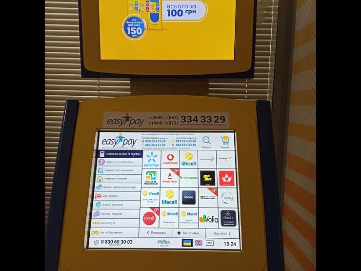 В Украине платежные терминалы EasyPay начали продавать SIM-карты мобильного оператора lifecell. Платежная система EasyPay и мобильный оператор lifecell запустили пилотный проект. Внешне платежный терминал ничем не отличается, но при этом оборудован диспенсером карт, который вмещает в себя до 150 SIM-карт. Для клиента выгода очевидна, поскольку в салоне связи или магазине стартовый пакет lifecell стоит 150 гривен, а в платежном терминале его можно приобрести за 100 гривен. За эту сумму клиент получит случайным образом сгенерированный абонентский номер. Кроме того, функционал платежного терминала с sim-картами позволяет самостоятельно выбрать себе номер телефона. Для этого пользователю платежного автомата необходимо ввести на экране нужный номер, после этого система проверит, не занят ли он. Стоимость услуги выбора абонентского номера составляет от 150 до 3500 гривен. Платежный терминал также позволяет заменить SIM-карту формата 3G на формат 4G по цене 50 гривен. Все операции
