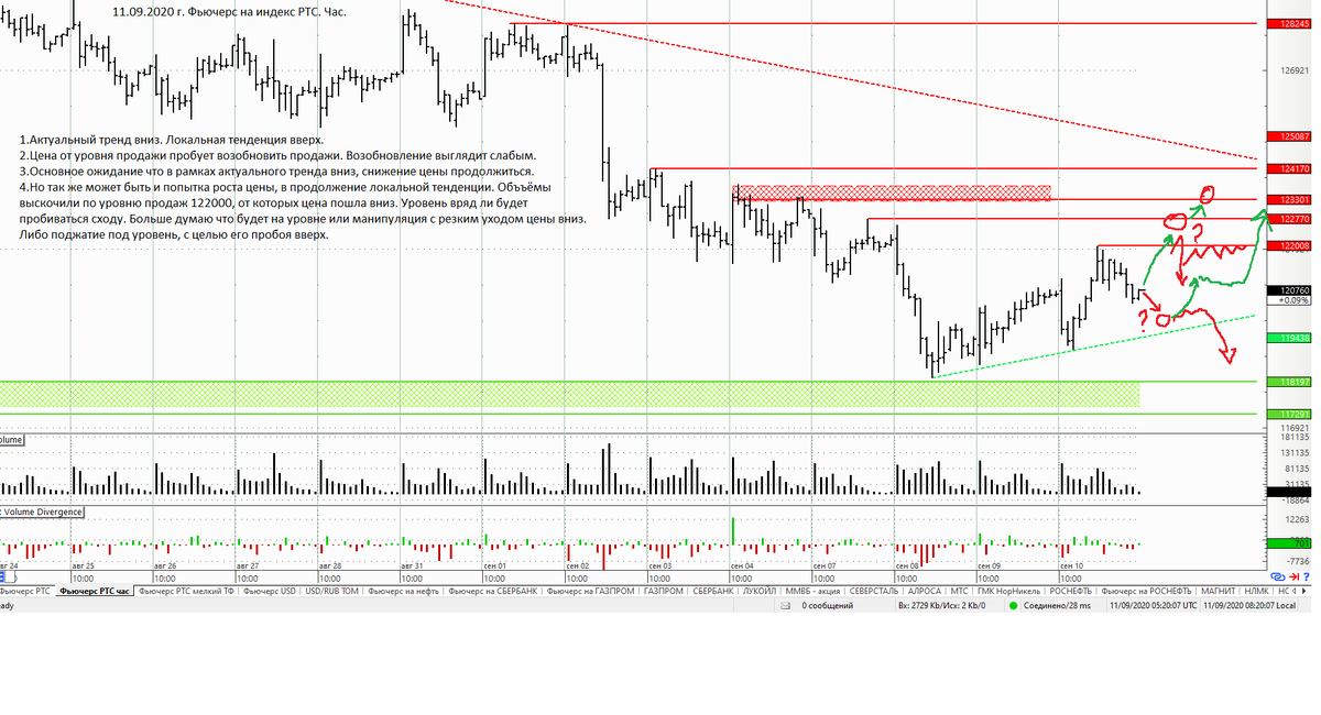 Сумеем развернуться вверх? Торгуем фьючерсом на индекс РТС. Готовимся к новому торгам 11.09.2020 г.