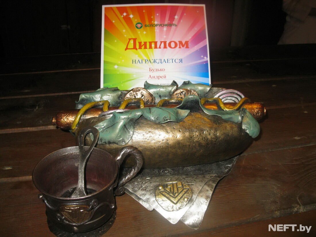 Мастеровые премудрости, понятно, пришли не вдруг, а с опытом. Увлечение превратилось в серьезное хобби около десяти лет назад. Сначала делал то и так, как сам понимал и представлял. А потом посчастливилось попасть в команду известного гродненского кузнеца Юрия Круша и обучиться художественной ковке. Припоминает одну из коллективных работ того времени – изящное ограждение с бутонами роз для белорусской спортсменки и телеведущей Ольги Барабанщиковой. Собственная же первая работа на кузне – каминная решетка в виде сказочных домиков с изогнутыми крышами и застекленными оконцами. С 2013 года Андрей – оператор АЗС. Признается, что именно благодаря приходу на «Белоруснефть» открыл для себя новые возможности кузнечного творчества: