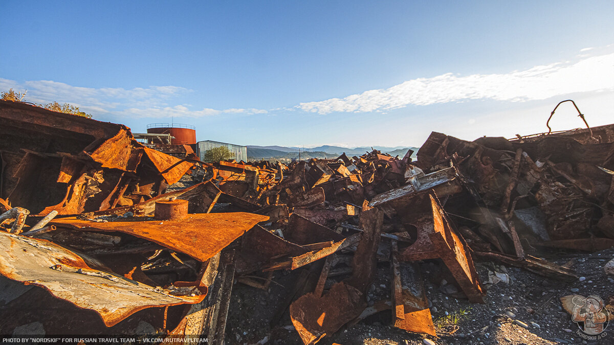 Крайне любопытное и фактурное «заброшенное место». Ещё несколько лет назад количество судов здесь хватило бы для создания маленького музея, но увы, ещё одной достопримечательностью в Абхазии больше не стало и скоро остатки судов распилят на металл и поездом отправят на переплавку в Россию… Грустный, но вполне очевидный расклад.