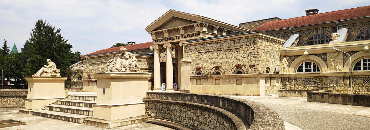 Грязелечебница им. Семашко – один из самых известных и запоминающихся памятников архитектуры Кавказа. Здание было построено более века назад, однако сохранило первоначальный облик до наших дней. Благородная кровля из черепицы, изысканные скульптуры и колонны, колоритные барельефы впечатляют с первой минуты. На входе гостей встречают две статуи львов – они символизируют победу над болезнями.
