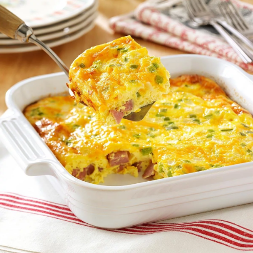 Хозяйки всегда стараются придумать что-то новое и интересное, чтобы накормить свою семью, ведь одни и те же блюда надоедают. Рецепт вкусного и простого завтрака понравится легкостью приготовления и великолепным вкусом. Добрый день уважаемые читатели! Читайте статью, ставьте лайки, подписывайтесь на канал, выражайте свои мысли в комментариях. Дальше будет еще больше интересной и полезной информации! Ингредиенты Для приготовления омлета в духовке понадобятся совсем простые продукты плавленый сырок – 150 гр; укроп – небольшой пучок; яйца – 2шт; разрыхлитель – 1 ч. ложки; сметана – 4 ст. ложки; мука – 4 ст. ложки; сахар – 1 ст. ложка; соль. Вкусный и простой завтрак для всей семьи: приготовления Перед началом приготовления включите прогреваться духовку на 180 градусов. Укроп моем и мелко режем. Плавленый сыр трем на терке (можно соломкой). В глубокую миску разбиваем яйца и взбиваем их, добавляем измельченные сыр и укроп, потом соль и сахар и все очень хорошо перемешиваем. Берем муку, доба