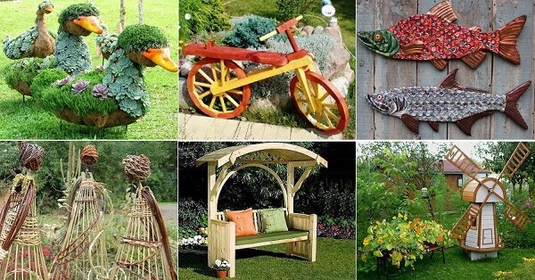 Деревянный велосипед, «живой» пень, яркие рыбины, утки из суккулентов, зеленые «медузы» и еще 5 интересных, бюджетных, доступных садовых идей!