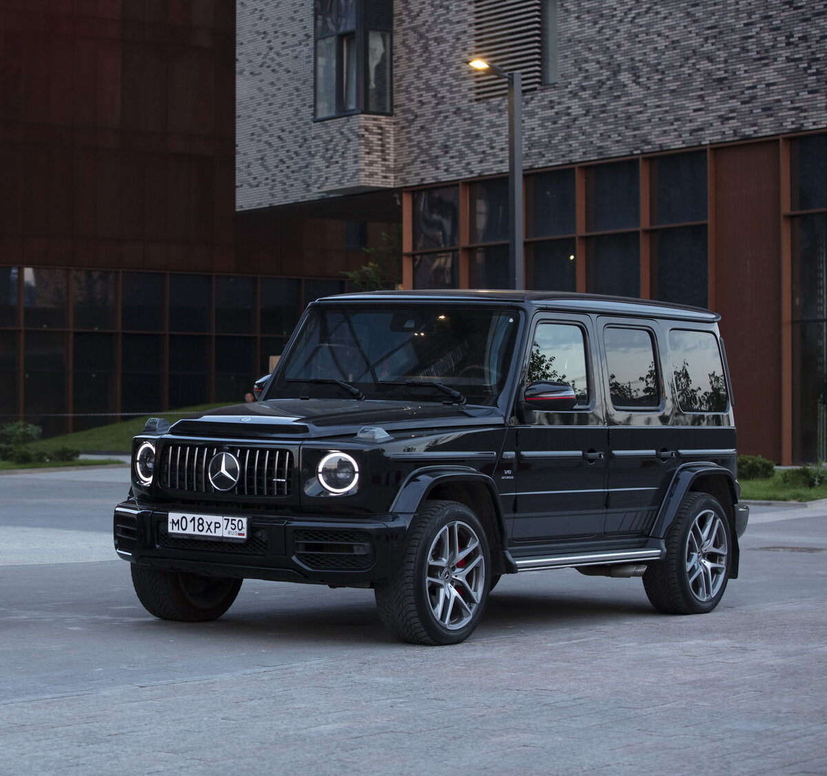 Обутый в 21-дюймовые легкосплавные диски со спортивными шинами, элегантный, как концертный рояль, Mercedes-AMG G63 не выглядит покорителем бездорожья. Он скорее городской хищник, способный одним только глубоким и низким рыком выхлопной системы внушить окружающим уважение к себе.