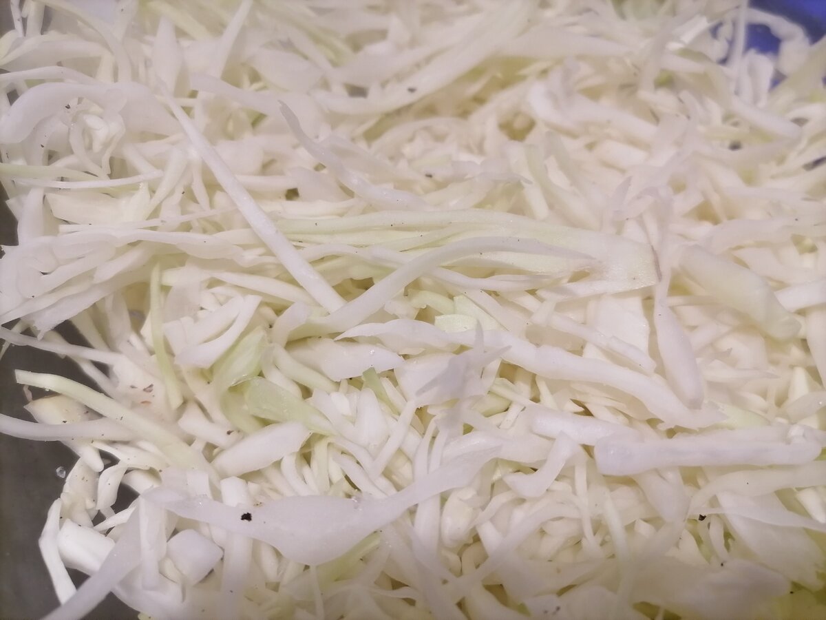 1. Капусту тоненько шинкуем, посыпаем солью и перчим.