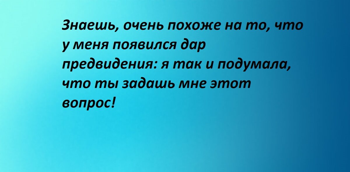 · «Знаешь, очень похоже на то, что у меня появился дар предвидения: я так и подумала, что ты задашь мне этот вопрос!»;