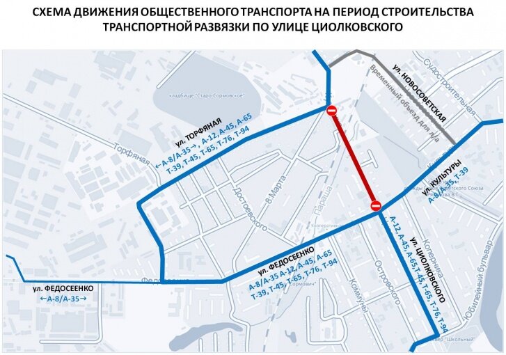 14 сентября жителей Сормовского района ждут масштабные и длительные транспортные изменения — участок улицы Циолковского перекроют для работ по строительству многоуровневой развязки. Мы уже показывали вам, как выглядит дорога-дублер, предназначенная для тех, кто ездит на личных авто. Пришло время рассказать пассажирам общественного транспорта, по какому маршруту их будут возить автобусы.