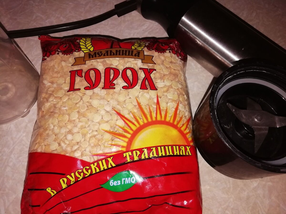 При помощи этих вещей нужно необходимо количество гороха перемолоть до мукообразного состояния.