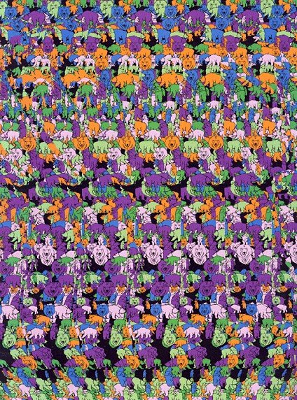 Посмотрите в центр изображения и расслабтесь. Через несколько секунд зрение начнет погружаться сквозь рисунка. Затем вы начнёте видеть слои картины. В идеале через полминуты вы увидите, что изображено на стереграмме. Продолжим... Ещё немного и финал. Уже середина тестов. Ещё две стереограммы и конец. Ну и последняя. Напиши свой результат в комментариях. Вторая часть этой статьи.