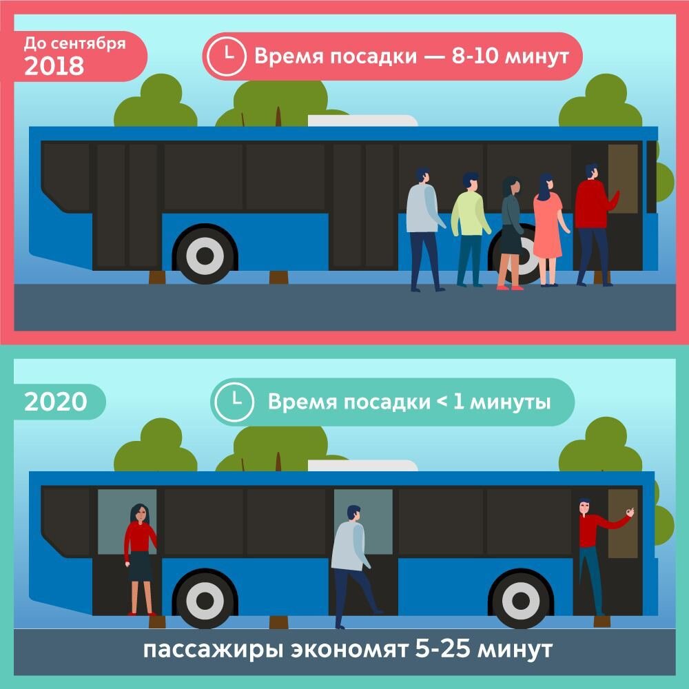 Время посадки и поездки сократилось, теперь очередей и толкучки на входе нет. Не забывайте платить за проезд. Это помогает нам регулировать количество транспорта на маршруте.