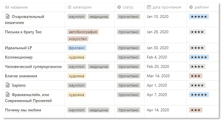 Чтобы вести учет книг, которые вы прочли, необязательно искать специальное приложение или онлайн-сервис. Если вы уже пользуетесь Notion, сделать книжный трекер можно там.