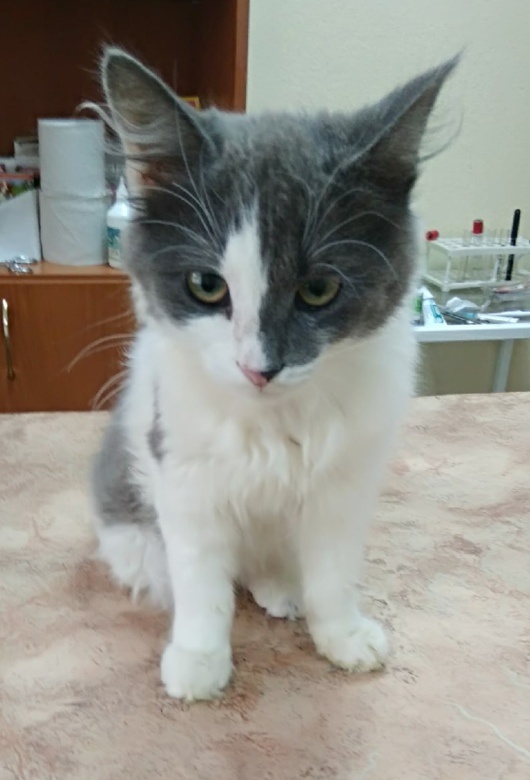На передержке подрос и возмужал. Пушистый пепел с белым, роскошный хвост. Котенок очень ручной и любит помурчать с человеком.