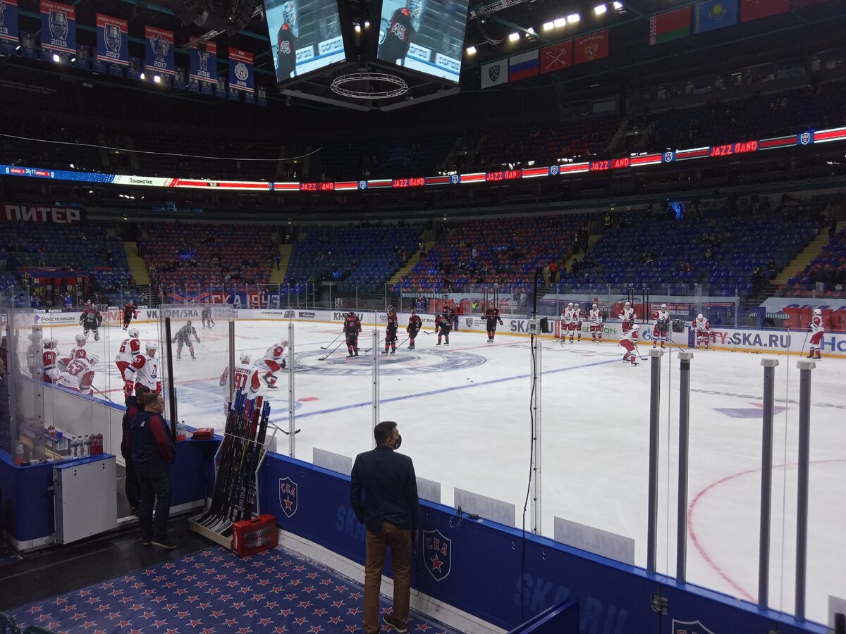 "Как же, чёрт возьми, приятно вернуться!" Вы наверняка так думали о каком-либо месте: площадь после реставрации, любимое кафе, в котором вы были лет пять назад последний раз, просто какое-то тёплое для души место. Так могут и имеют право сказать болельщики команд КХЛ, которым удалось прорваться сквозь барьеры коронавирусных ограничений в родные и любимые ледовые арены. Для меня, как болельщика СКА уже на протяжении долгих 16 лет, каждое возвращение в Ледовый (да даже и в Юбилейный) - праздник. Особенно, когда последний матч, который я посетил, был во время первого раунда плей-офф 2020. Да и составлять обзоры матчей, которые видел вживую, гораздо проще и интереснее, чем составлять обзоры по хайлайтам или играм в записи. Игра началась с предматчевого шоу с довольно бодрого и уверенного прессинга ярославцев. На мгновение показалось даже, что так будет происходить на протяжении всей игры. Однако на пятой минуте Андрей Кузьменко завершил крайне симпатичную комбинацию лазерным по точности бр