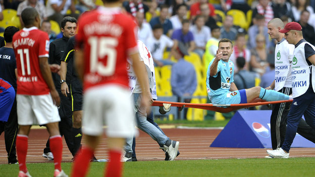 Обсуждение ошибок защиты красно-синих — это еще и вопрос реакции Акинфеева на них. Теперь вратарь более спокоен и даже говорит о своей слишком эмоциональной реакции на эпизод из дерби со «Спартаком» в августе 2011-го, когда после столкновения с Веллитоном и падения во второй раз порвал крестообразные связки колена.