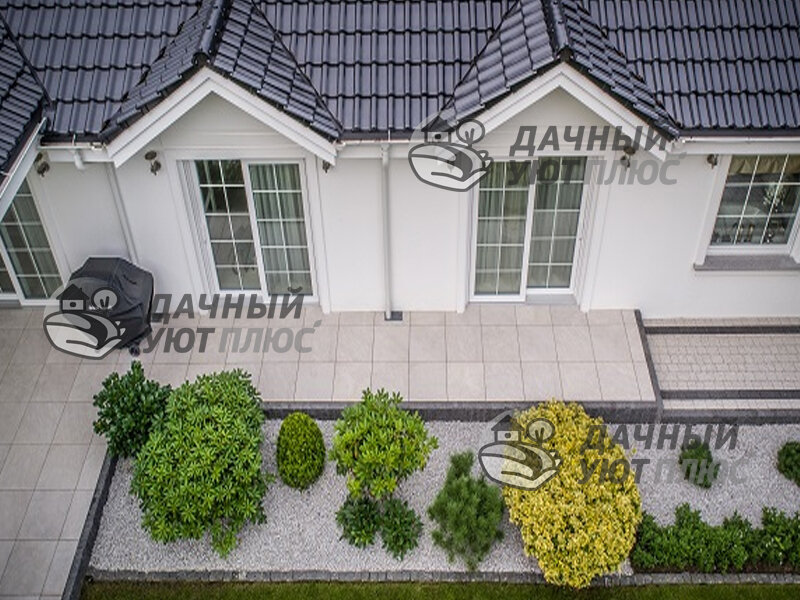 Светлые тона хорошо подойдут для обозначения краев и садовых дорожек. Также они будут очень нужны темным фасадам. Они их осветят и привнесут в композицию интересный контраст. Также это хорошее решение, когда у нас уже есть светлая терраса и лестница . Темный куб слишком сильно отделял бы от остального, создавая неприятное цветовое столкновение. Однако если мы хотим использовать темный куб даже из практических соображений - позаботимся о плавном переходе цвета от светлой террасы к более темной.