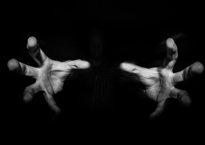 Я спешил в отдел, к капитану. Забежав к нему в кабинет, я захлопнул за собой дверь. Капитан стоял за столом, лицом ко мне, спиной к окну. Не успел я открыть рта, как заметил, что за окном было подозрительно темно. В комнате горел свет. Капитан стоял безмолвно. Я сделал пару шагов к нему и замер. Над ним из темноты свисали бледные огромные руки. Свет погас.
