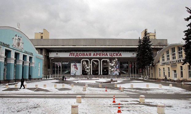 Со стороны проспекта можно разглядеть три здания. В центре – Ледовая арена ЦСКА, построенная в 1991 году.