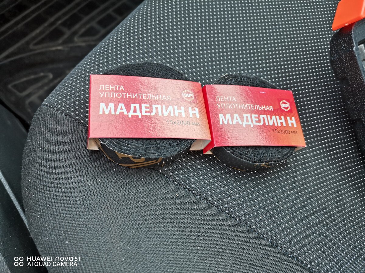 Появились у меня "сверчки" в районе рамки приборной панели. Для устранения, приобрёл ленту антишум- Маделин Н. Представляет из себя полоску ткани 15 мм на 2000 мм на клейкой основе.