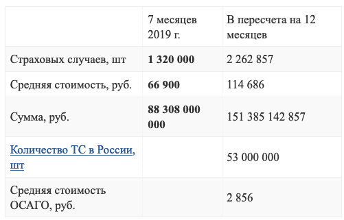 По данным Российскийсоюз автостраховщиков (исходные данные выделены жирным):