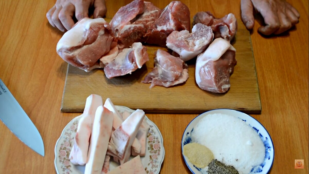 Мясо и сало подмораживаем в морозилке, воду так же хорошо охлаждаем.