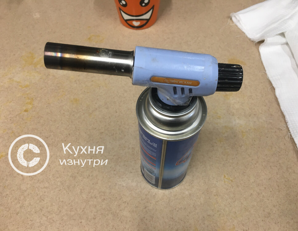 А ещё горелкой очень удобно нагреть нож. Горячий нож очень помогает при нарезке некоторых десертов и холодного сливочного масла.