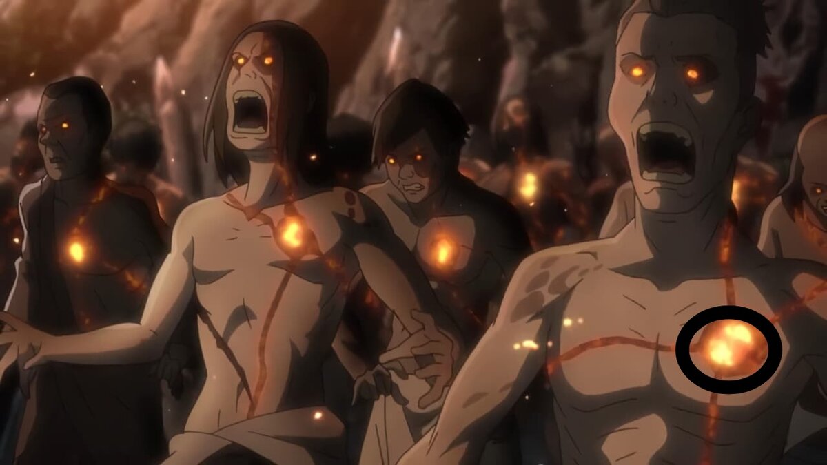 Аниме Канабери Железной Крепости. Что же в этом аниме удивительного удивительно то что не смотря на популярную тему "Зомби" они сделали совсем другой жанр и совсем другой сюжет обычно зомби это люди которые заражены вирусом тут же вирусом является "Страх людей" из за того что те в свою очередь боятся умереть но можно даже без страха стать канабэ(тоесть зомби если легче сказать) для этого лишь стоит дать укусить себя канабэ.Если вы решитесь бороться то нужно знать что они умрут от разрушения ядра которое довольно сложно разрушить.Вот пример: То что выделено в кружок это и есть ядро его можно разрушить но для этого нужны винтовки с повышенным пробитием иначе ядро не сломать. Под конец аниме мы видем как начинают использовать новый вирус для канабери "Химера" но лучше всего он виден на главном герое в конце. Тут довольно видно что он делает с канабери он повышает его физ силу во много раз но есть и минус при долгом использовании можно умереть без противоядия в конце когда в калывают пр