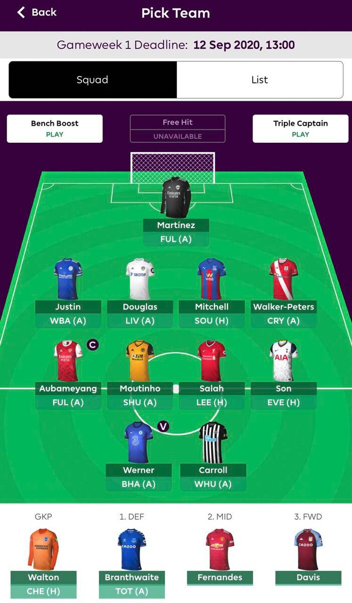Вратари: выбор во вратарской позиции велся исключительно из финансовых условий. Тратить на вратарей в фэнтези больше 10,0 фунтов – вздор, поэтому опционально были выбраны Мартинес из «Арсенала» (£4,5) и Уолтон из «Брайтона» (£4,0). Эмилиано, видимо, будет основным вратарем «канониров» по крайней мере в первых турах, поэтому с учетом календаря выбор пал на него, а не, например, на Райана из «Брайтона». Уолтон просто самый дешевый вратарь в игре – очков от него не будет.