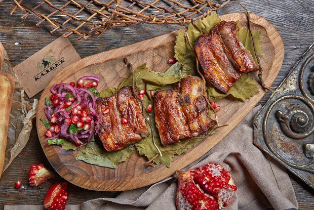 Простейший рецепт от Мамии Джоджуа, шефа московского ресторана «Казбек». Ребра полдня проводят в объятиях растительного масла, лука и паприки, а после жарятся на мангале в течение шести минут.