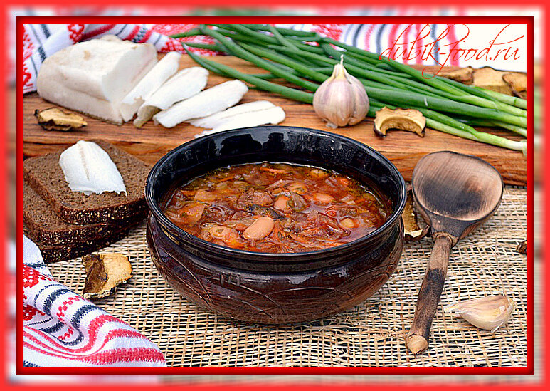 Замечательный рецепт вкусного борща с сушеными грибами и фасолью. Даже без мяса это первое блюдо получается очень сытным, с приятным грибным вкусом и ароматом. Этот борщ прекрасно подойдет для повседневного обеда и для постного меню.