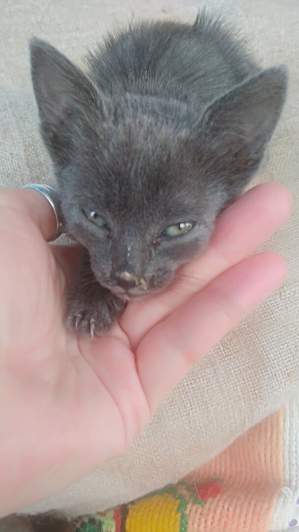 Она была очень истощенная, когда ее принесли в приют и даже в какой-то момент было сомнение, что выживет ли она или нет?? Котенок русской